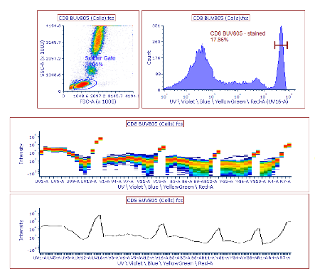 Windows? CyView?軟件可以完成儀器控制、數(shù)據(jù)分析的各種功能,這些功能包括數(shù)據(jù)的實(shí)時(shí)采集、實(shí)時(shí)或離線數(shù)據(jù)分析、實(shí)時(shí)或離線的熒光補(bǔ)償?shù)裙δ堋T撥浖勺杂山M合不同的參數(shù)設(shè)置界面和數(shù)據(jù)處理界面,便于不同應(yīng)用程序之間完成切換。該軟件可自由組合不同的參數(shù)設(shè)置界面和數(shù)據(jù)處理界面,便于不同應(yīng)用程序之間完成切換。CyView?被用于免疫學(xué)、微生物學(xué)、細(xì)胞周期分析、DNA定量、倍性分析等所有應(yīng)用領(lǐng)域。檢測數(shù)據(jù)可以流式細(xì)胞儀標(biāo)準(zhǔn)文件FCS格式存儲,以方便其他第三方分析軟件進(jìn)行數(shù)據(jù)處理。CyView?一個(gè)獨(dú)特的功能是,在進(jìn)行分析染料的同時(shí),對熒光的光譜重疊進(jìn)行數(shù)字形式的在線/離線顏色串?dāng)_補(bǔ)償。N色軟件補(bǔ)償算法允許在任何參數(shù)之間進(jìn)行串?dāng)_校正,而不需要重新跑樣。